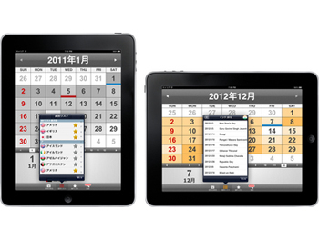 そのほか、頻繁に表示する国はマイリストに登録が可能。iOS 4のマルチタスクに対応し、縦横4方向どの角度でもカレンダーを表示できる。