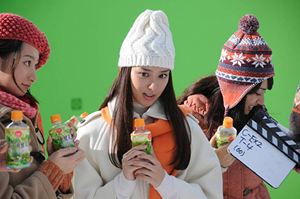 今回、彼女は、5人の共演者と一緒に撮影を行った。監督からの「自由な雰囲気で、にぎやかに爽健美茶を飲んでみよう」とのオーダーに、冬らしく、全員でおしくらまんじゅうをすることに。