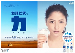 そして、1杯のカルピスを飲む彼女の映像になると、象徴的に「カルピスのカ(チカラ)」というコピーが入り、彼女の「カルピスには、力、がある。乳酸菌と酵母の生みだすチカラ」というナレーションで締めくくる。