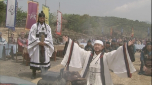 時は紀元1世紀のはじめ頃、北方民族の族長キム・ユンは後漢に攻められる。大草原の中の騎馬戦をとくとご覧いただきたい。CGも使ったこの戦闘シーンはかなり刺激的。特にまるで3Dのように画面から飛び出してきそうな血しぶきには思わずのけぞってしまう。詳しくは1話詳細で。