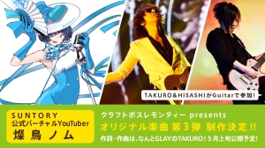 GLAY TAKURO、HISASHI参加サントリー公式Vチューバー「燦鳥ノム」オリジナル楽曲第3弾5月上旬配信