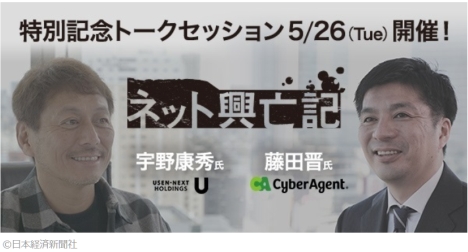 「ネット興亡記」の USEN 宇野康秀×サイバー 藤田晋 特別トーク5月26日ライブ配信決定!