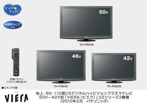 パナソニックのデジタルAVCマーケティング本部は、「ビエラ」最高画質シリーズ「V2」シリーズ3機種(いずれもオープン価格)を3月5日に発売する。