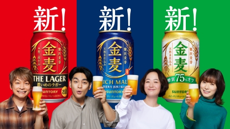 サントリービールは、「金麦」ブランド3種同時リニューアルに合わせて、各ブランドのメッセンジャーの柳楽優弥、黒木華、松岡茉優、香取慎吾ら4人が勢ぞろいする豪華な新TV-CMが1月9日(月・祝)より放映、Youtubeにて先行公開した。