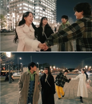 その後、“みおたく夫婦”と“たかみる夫婦”はダブルデートをするために合流し初対面を果たす。「めっちゃ綺麗!」「やばーい!」と2組の夫婦は大はしゃぎ。その後、「みんなで手を繋ごう」と4人で手を繋いだり、百瀬が「輪になりましょう」と提案したことから輪になってぐるぐると回ったりと、すっかり打ち解けた様子を見せる。運転手の永田以外は、行きの車内でお酒を飲んでいたこともあり、堀、百瀬はほろ酔い姿で“密着ショット”を次々撮影。