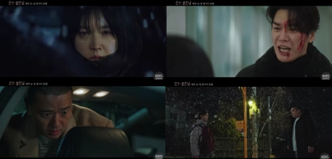 物語の最後には、テゴに連絡したジニが薬を届けるスアの写真を通報。スアを尾行していたジュニョンが新人刑事を脅迫し、凶器を手にスアの前に現れた。
