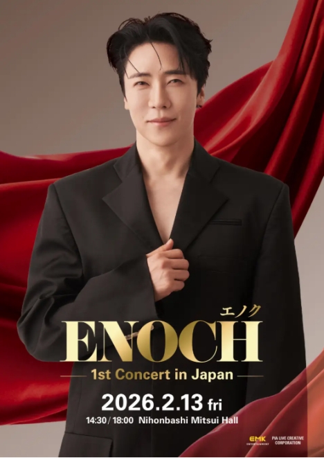 韓国ミュージカル界を代表する実力派俳優エノク(ENOCH)が、2026年2月13日(金)、日本橋三井ホールにて自身初となる日本単独コンサート『エノク 1st コンサート in Japan』を開催することが決定した。YouTube『現役歌王2』にて彼の美声が聞ける。