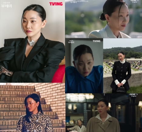 チャン・ユンジュは、表情の微細な変化や呼吸の緩急、鋭い視線でソンヨンの冷たい野望を巧みに描き出す。黒のツーピースやヒョウ柄コート、オーバーサイズシャツなど華やかで上品な衣装を身にまとい、権力を握る場面では赤や青などの鮮やかなカラーで強烈な存在感を発揮。歩き方や手の仕草にまで冷酷さを宿らせ、視聴者を引き込む完璧な演技を見せている。