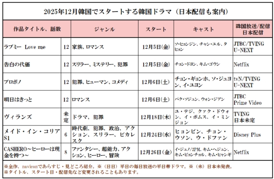 【2025年12月韓国でスタートの新ドラマ】あらすじ、見どころ、キャスト、日本配信先も紹介(11月21日更新)