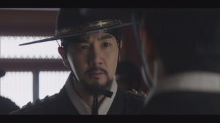 今話、本作で一番の激しい立ち回りのシーンがある。タルムン役パク・フンの堂々とした立ち回りがカッコいい。一方、見事にジグァンをとらえたイ・グムの矢を褒めながらも、もう少し早く来てくれたいいのに、と憎まれ口を叩くムンスとイ・グムの篤い友情もまたいい。ミン・ジノンのモデルになったのは実在した閔鎮遠(ミン・ジノン)。粛宗の二番目の正妃である仁顕王后の実弟としているが、実際には兄。