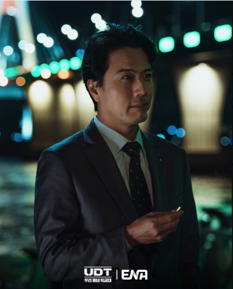 「UDT:私たちの町の特殊部隊」は、「家族」と「町」を守るために立ち上がった元・特殊部隊員たちの奮闘を、笑いと感動を交えて描くアクションコメディ。ハン・ジェソクが演じるイ・グンチョルは、軍内部の不正の影を追う冷静な戦略家で、言葉より行動で示すキャラクターを緻密な視線と呼吸で表現した。