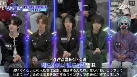 本作は、『BOYS PLANET』や『I-LAND』シリーズを手がけてきたMnetが制作。ドラム、ベース、ギター、キーボード、ボーカルという5つのバンドポジションに分かれ、世界各国から集まった50名がバンドとしての完成度を競う。第8話は、生存率50%という厳しい条件の中で、セミファイナルへ進む20名を選抜する「ラインナップ発表式」が行われた。