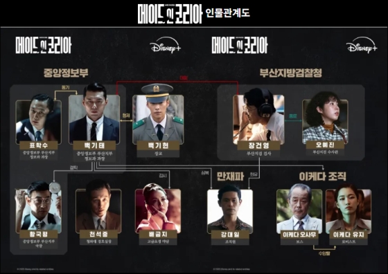 2025年12月24日、Disney+(ディズニープラス)にて独占配信される「メイド・イン・コリア」(메이드 인 코리아)より、ヒョンビン、チョン・ウソン、ウ・ドファンら出演者たちと演じる役柄を、画像と人物相関図にあわせて徹底紹介する。
