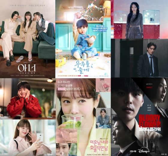 下段:MBC「君がきらめく季節に」、JTBC「未婚男女の効率的な出会い」、Disney+「ブラッディ・フラワー」