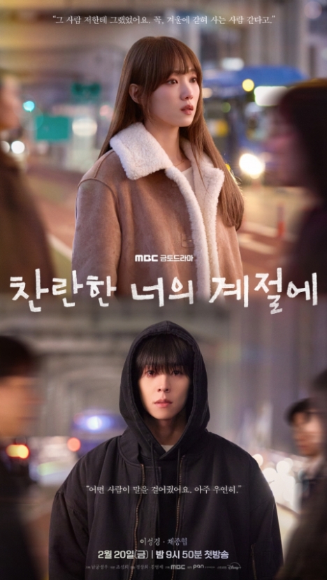 冷たく凍りついていた時間を覚醒させるイ・ソンギョンとチェ・ジョンヒョンの「きらめく(찬란한)ロマンス」はMBC新しい金土ドラマ「燦爛な君の季節に」は来る2月20日(金)21時50分初放送される。日本ではDisney+(ディズニープラス)を通じて配信される。