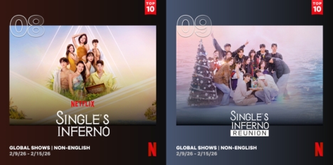 Netflixの人気恋愛リアリティシリーズ「脱出おひとり島」シーズン5(原題:솔로지옥5)と、スピンオフ「脱出おひとり島:再会」(原題:솔로지옥 리유니언)が、グローバルTOP10に同時ランクインした。
