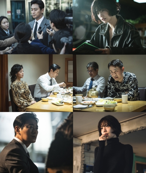 公開されたスチールでは、事件の中心に立つバン・テソプが、多くの視線と問いに囲まれながらも揺るぎない姿勢を保つ様子が目を引く。続いて、鋭い眼差しで何かを追究するファン・ジョンウォン(ナナ)の姿は、隠された真実や新たな手がかりへと迫る動きを示唆し、緊張感を高める。さらに、権力をめぐるクォン・ジョンウク(オ・ジョンセ)とイ・ヤンミ(チャ・ジュヨン)の微妙な駆け引きも捉えられている。同じ場にいる二人の間に流れる張り詰めた空気と、それぞれ異なる思惑は関係の亀裂を予感させ、複雑化する権力構図を想像させる。また、新たな選択を準備するチュ・サンア(ハ・ジウォン)の姿も視線を集める。冷たい表情の裏に隠された計算と決意、そしてそれを取り巻く雰囲気は、事件が新たな方向へ進みつつあることを暗示している。異なる立場で動く人物たちの行動がどのような結果を招くのか、関心が高まっている。